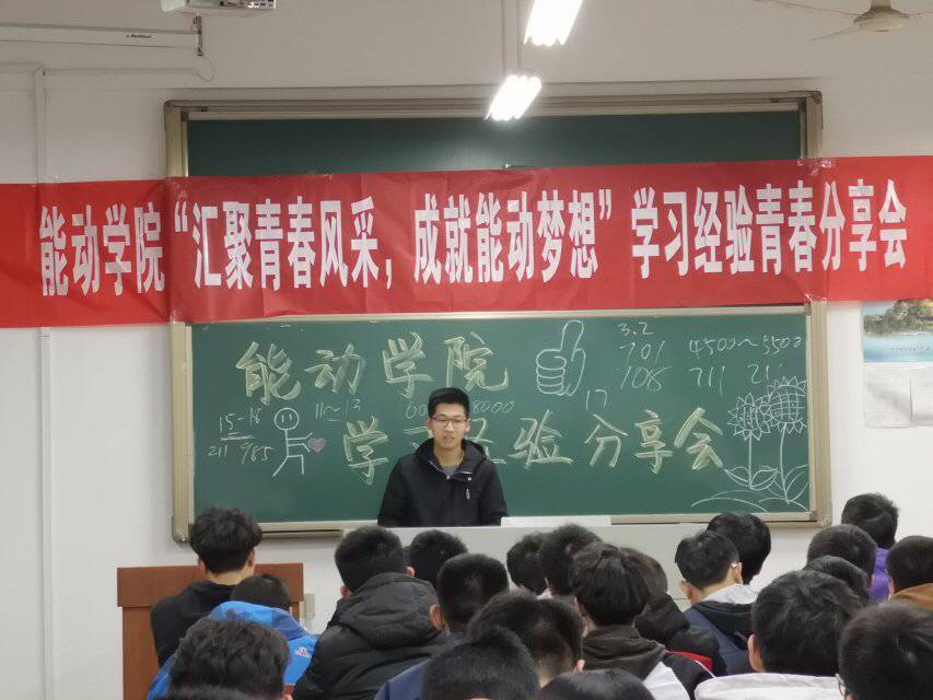 接着,由2015级能动专业的陈鑫和建环专业的战庭军详细地讲述了自己的考研经历。他们分别从时间管理、知识体系这两个方面展开,警示大家不能只流于表面,加强练习,提高执行力,着重强调了复习和坚持的重要性,并且鼓励同学们要勇于尝试、敢于挑战,不要低估了自己的潜力。