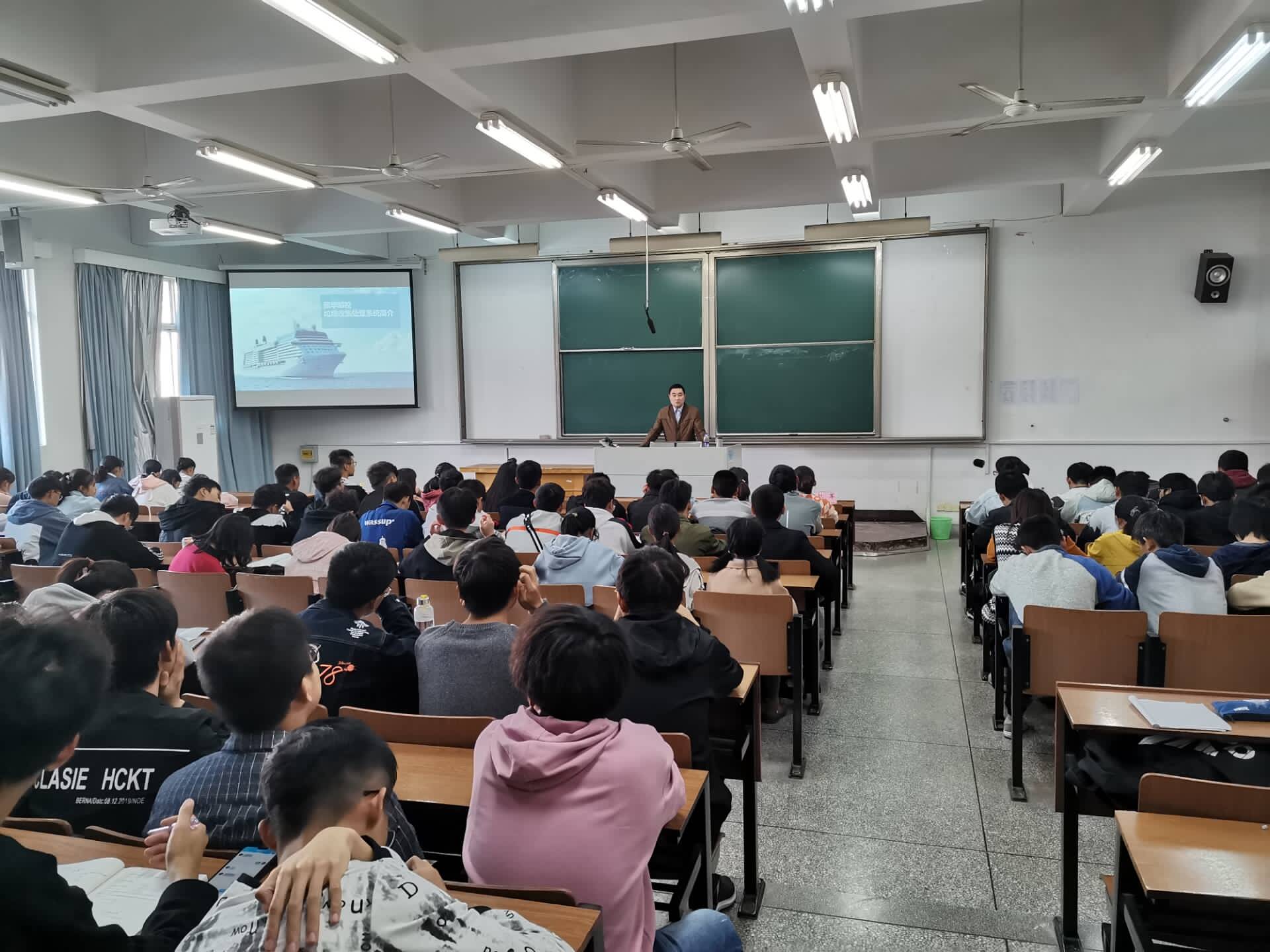 2019年11月15日下午2点,在西综218教室召开了以“豪华邮轮垃圾收集处理技术研究”为主题的讲座,72779太阳集团副经理杜军是本次讲座的开讲人,面向全体2019级新生。