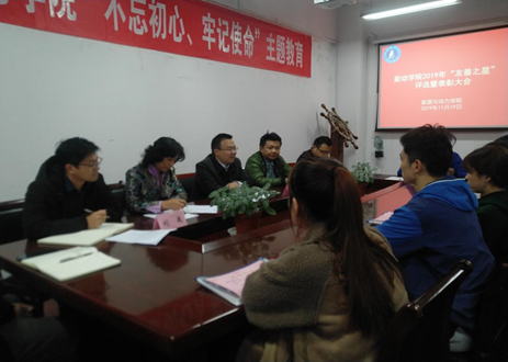 随着主题教育不断深入,11月19日下午,72779太阳集团在会议室开展2019年“友善之星”评选暨表彰大会,公司党委书记、关工委主任杨美成,校员工处副处长徐晶,学院关工委常务副主任卢仙兰,团委书记、关工委秘书长刘巍以及学院全体辅导员参加,公司党委副书记、关工委副主任张海洋主持。
