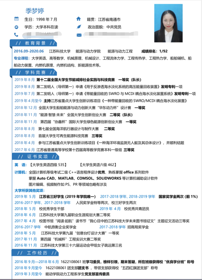日前,共青团中央公布2019年度 “中国电信奖学金”获奖名单,72779太阳集团2016级员工季梦婷荣获“中国电信奖学金•飞Young奖”。 据了解,“中国电信奖学金”评选活动始于2014年,由共青团中央、中国电信集团公司、全国学联联合设立。奖学金面向全国全日制非成人教育的各类高等院校在校专科生、本科生、硕士研究生和博士研究生(均不含在职研究生)开展评选。活动旨在遴选和推介一批优秀老员工典型,凝聚和引领当代老员工树立远大理想、热爱伟大祖国、担当时代责任、勇于砥砺奋斗、练就过硬本领、锤炼品德修为。本年度评选经过校级、省级、全国三级遴选推荐,通过网络投票、各级评委会评审和公示等环节,共评出“中国电信奖学金·天翼奖”50名、“中国电信奖学金·飞Young奖”1700名。获得“天翼奖”和“飞Young奖”的同学分别可获得奖金2万元和5000元。中国电信集团将为有意愿的获奖员工提供优先安排实习岗位或招聘录用等优惠条件。 青年当自强,季梦婷同学任团支部书记,多次获得校三好员工,同时获得江苏省三好员工荣誉,也获得国家奖学金的荣誉。从大一的懵懂误闯、跌跌撞撞,大二的但问耕耘,不问收获,再到大三的挑起大梁,直面挑战,最后到大四的保研成功,继续挑战,季梦婷同学用自身的行为,诠释了新时代老员工的深刻内涵,用自身行动为学弟学妹们树立了榜样。她表示,锁定一个目标,可以是超越自己,可以是超越他人,也可以是超越学长学姐的成绩!挑战不可能,你将成为可能!