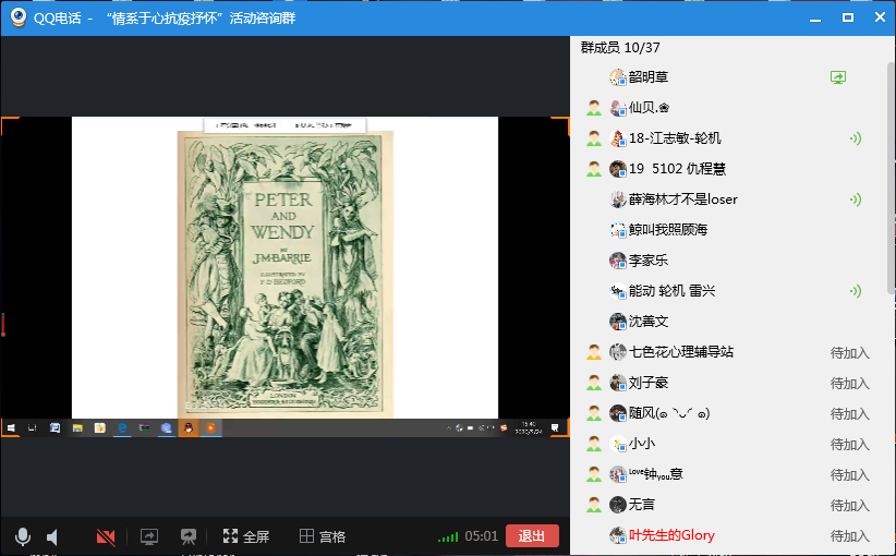 活动开始前,所有工作人员到位,活动参与人员提前十分钟进入活动指定QQ群。15点活动开始,确定好排序后,参赛人员开始逐个分享屏幕PPT和准备好的内容。在分享会过程中,分享者会根据分享内容与人员进行互动,调动活动氛围。