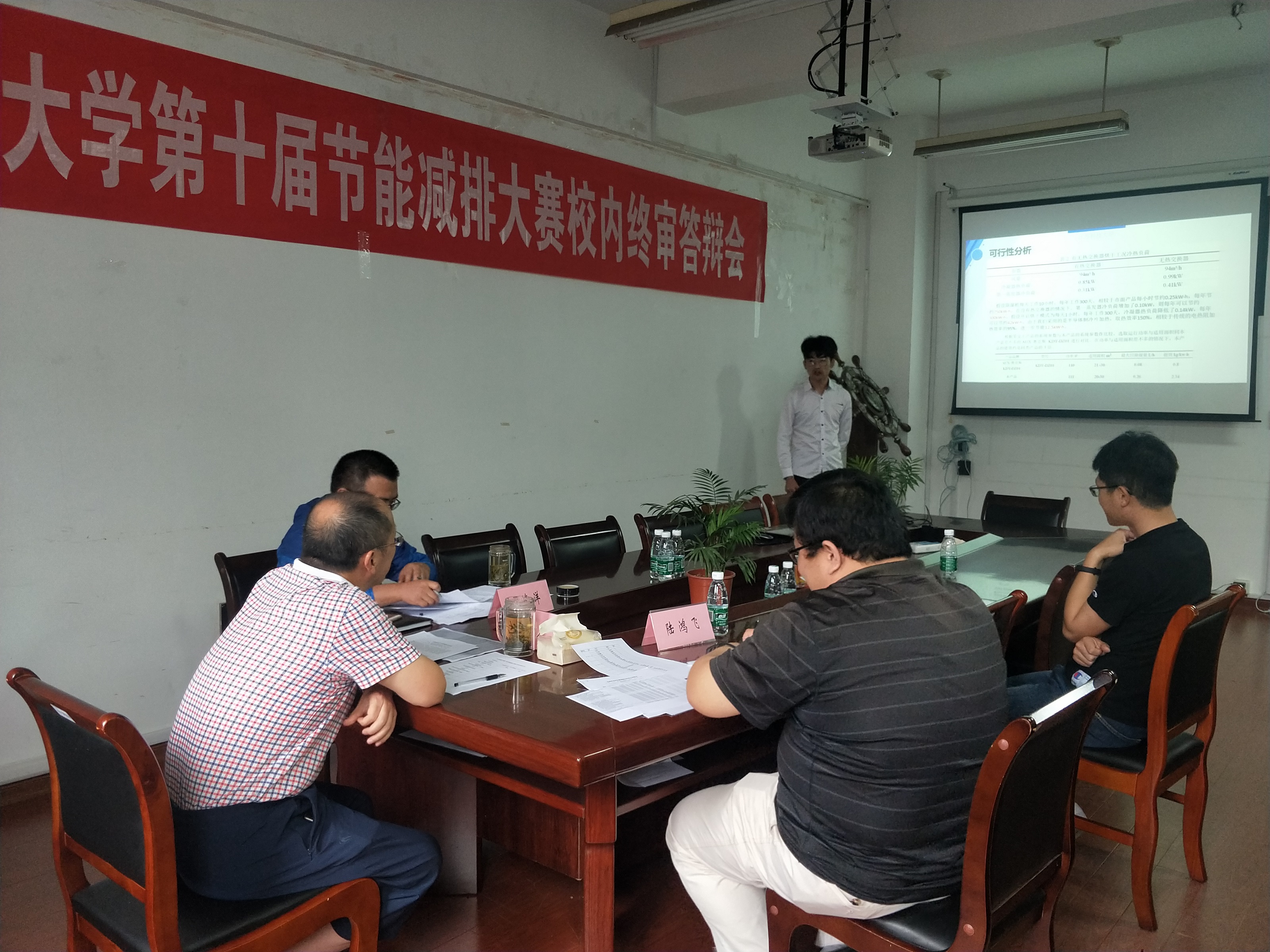 经过初赛的选拔,本届节能减排大赛复赛于2020年6月18日在东校区综B201会议室如火如荼地展开。此次答辩评审分别是:全国节能减排大赛评审专家姚寿广教授、教务处副处长陆鸿飞教授、全国“互联网+”竞赛国家三等奖获奖项目指导老师张海洋老师。