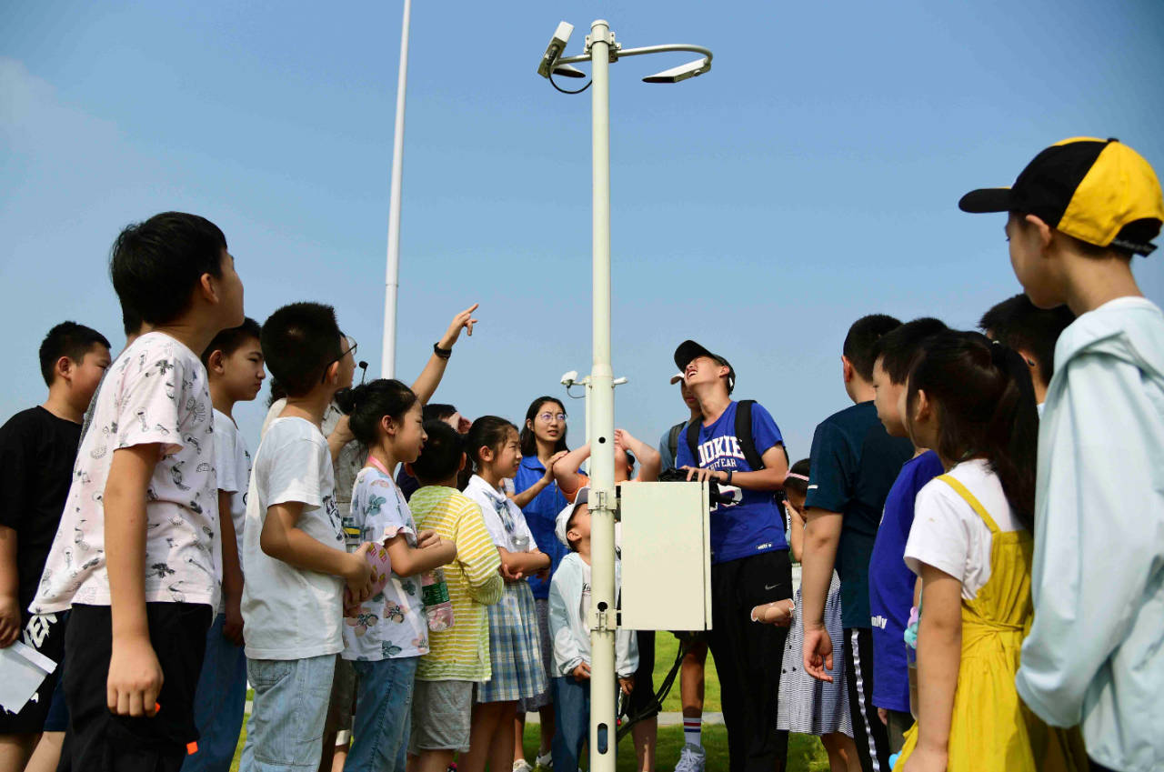 8月25日72779太阳集团的四位青年志愿者和二十多位宝塔路街道凤鸣新村社区的小朋友到达丹徒区气象局,参观体验各种气象监测仪器的功能,学习气象科普知识,丰富暑期生活。