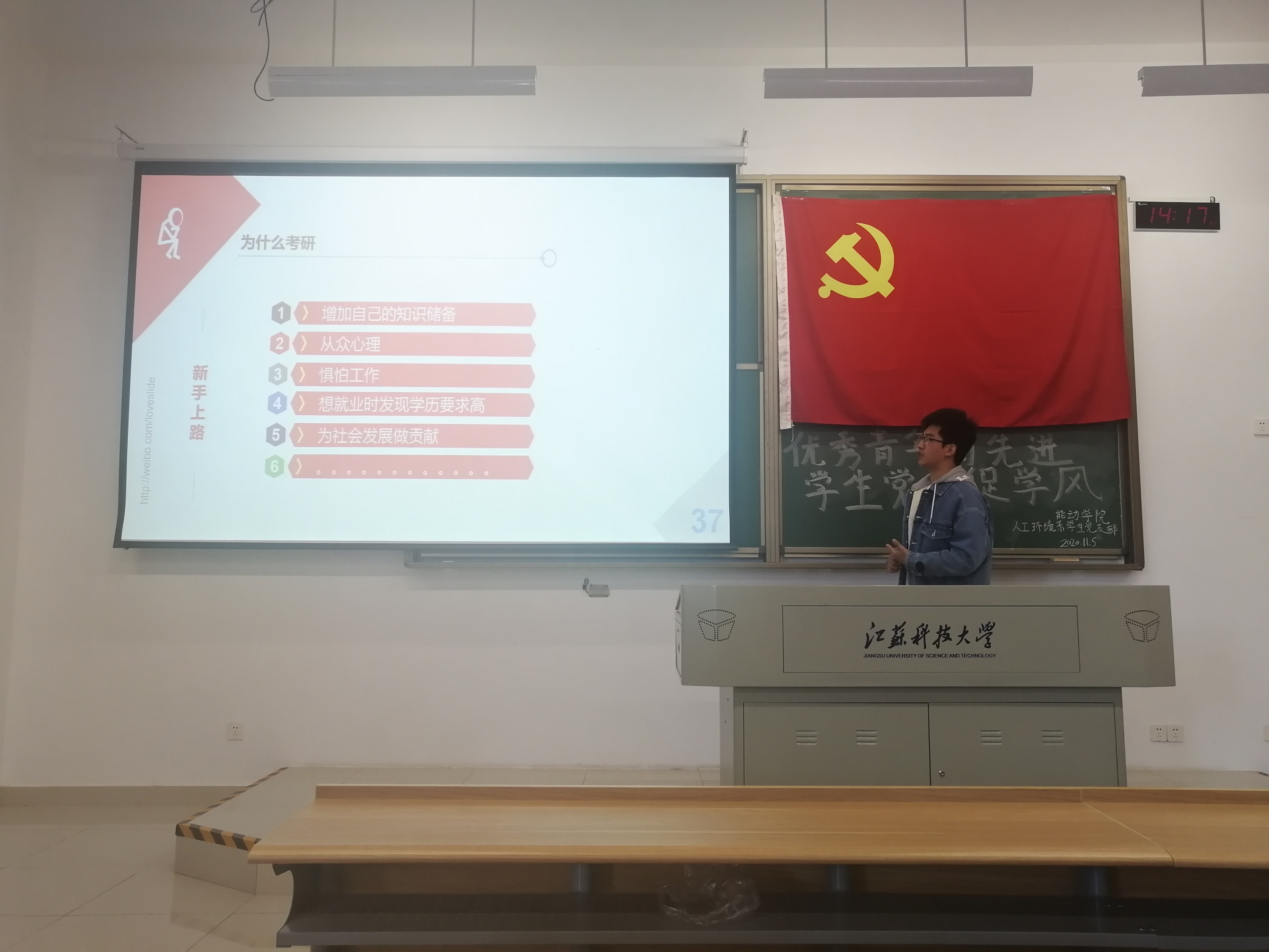 分享会上,三位优秀党员分别从保研、考研、国奖三个方面分享自己的收获感悟并提出宝贵意见。包睿祺同学从保研政策、流程、本专业研究方向以及保研初期可能遇到的疑惑与问题做出详细的解读,并且指出“学术研究要拒绝功利心态,眼光放长远,注重过程。”随后彭程同学详细介绍考研准备、考研过程中各科复习时间方法到最后的目标院校、调剂选择等各项流程。尤其强调保持心态的重要性与考研期间时间规划和对抗焦虑的方法等。最后施杰同学为大家介绍国家奖学金的具体内容与申请流程条件,并列举多位获得国奖的优秀毕业生,强调参与科技竞赛与科研项目的重要性。