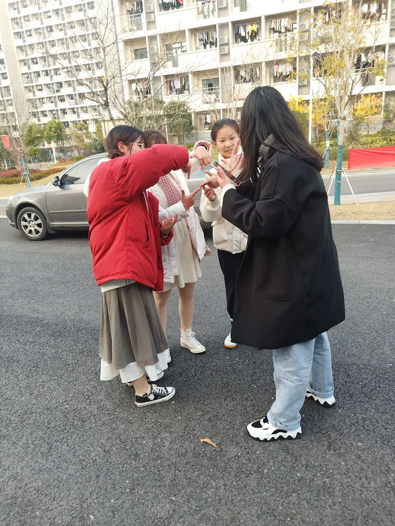 活动期间,每组同学从图书馆打卡点出发,依次经过操场和西食堂两个打卡点,每到一个打卡点需要抽取工作人员手里的动作牌,然后小组成员们相互协作跳起来按照指定动作拍照,让同学们的情绪也像他们此刻做的动作一样“jump up”。