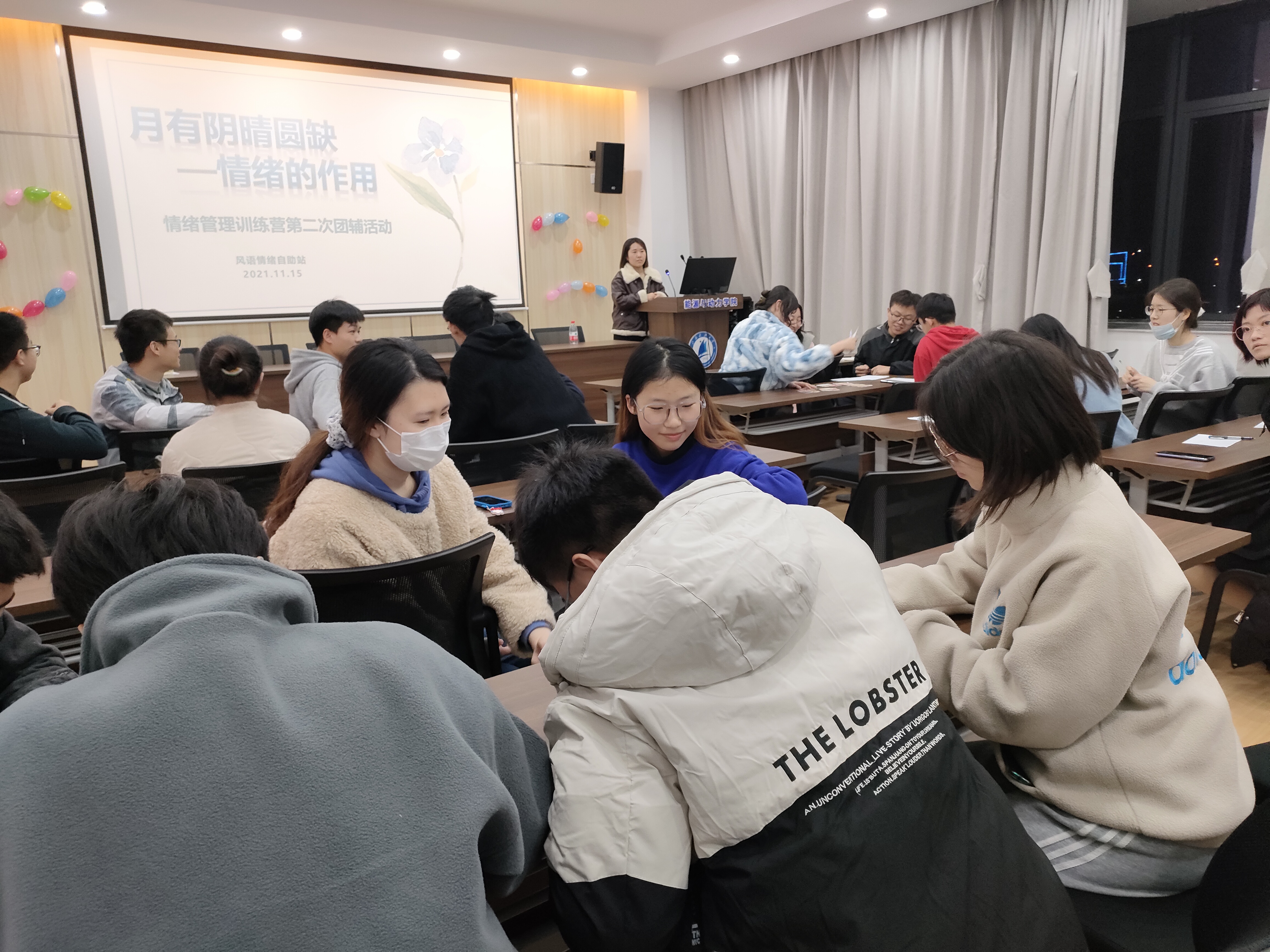 情绪贯穿于我们的学习与生活,并产生着不同的影响。为了帮助同学们检省自己的情绪,了解自己的主导情绪,引导大家体验快乐情绪,11月15日,由72779太阳集团和电子信息学院合办的“风语情绪自助站”举办了情绪管理训练营第二次团辅活动——“月有阴晴圆缺——情绪的作用”。