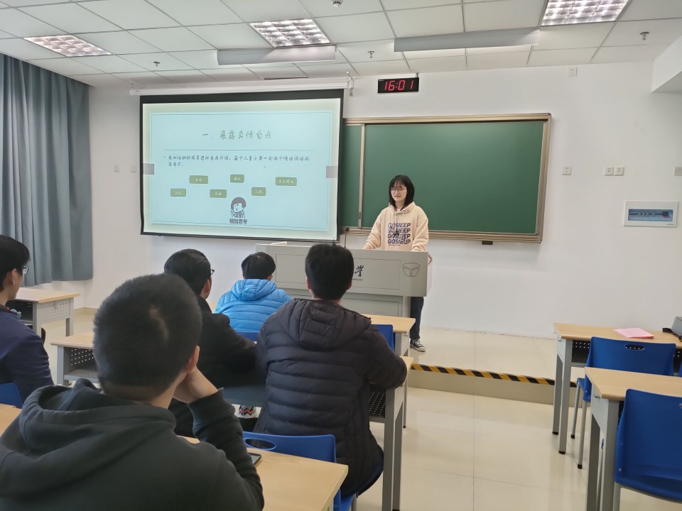 接着,主持人向大家讲述了两个有关管理情绪和情商的小故事,引发了大家对绪管理的意义”以及“情商和人生是否有关系”的思考。之后通过“你演我猜”的小游戏,让大家了解到情绪并没有好坏之分,关键要表现适当。一些消极情绪只要表现恰当也是有益的,例如我们的考试成绩不如意时,产生了羞愧、内疚的情绪,有助于我们重视学习,奋起直追。
