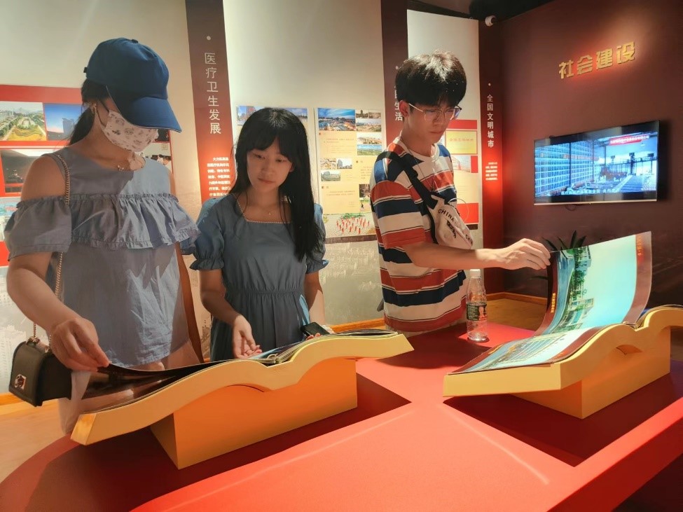 图为星火实践团成员观看镇江未来发展的蓝图