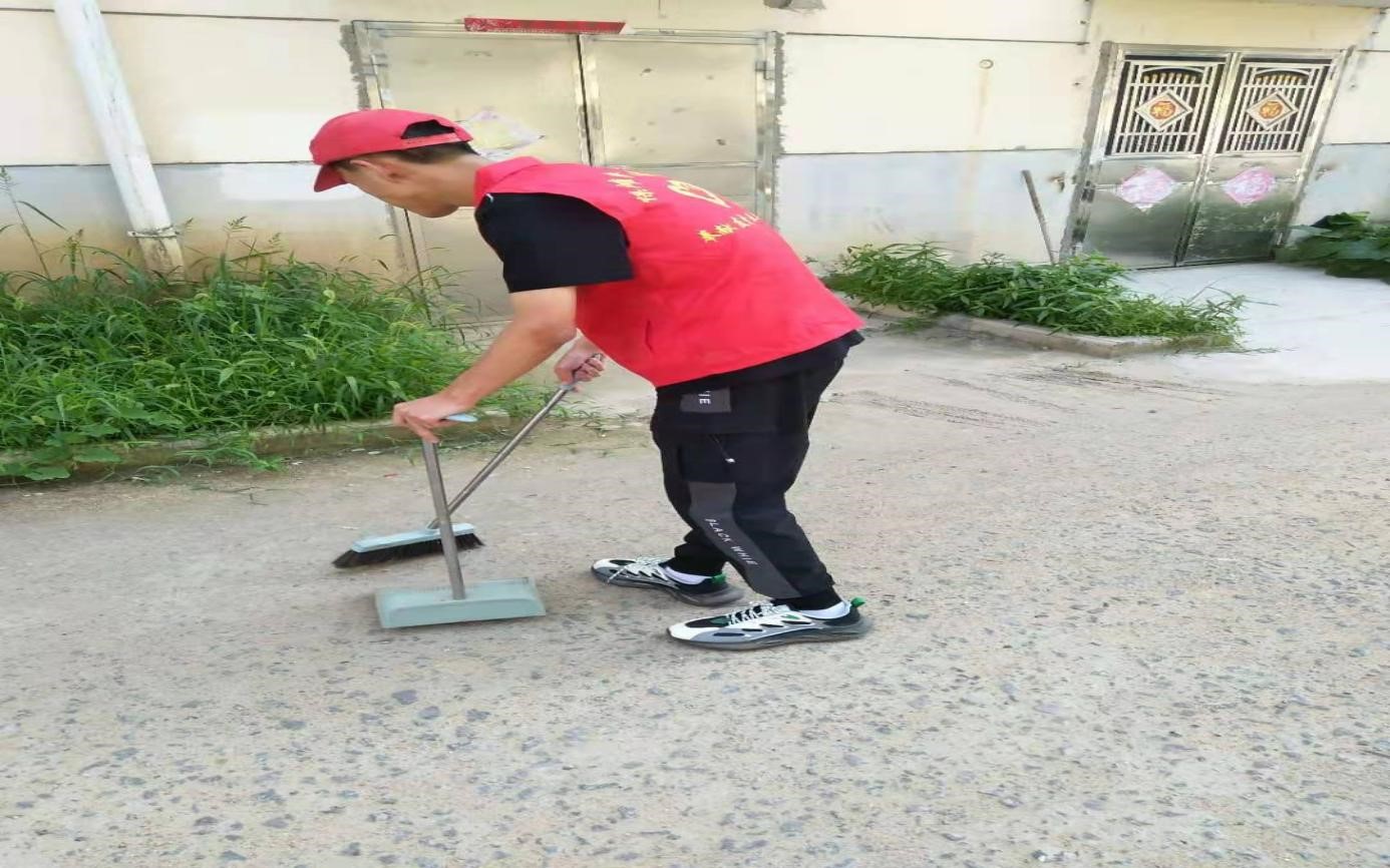 实践团队成员正在社区帮忙打扫卫生 严恒伟供图