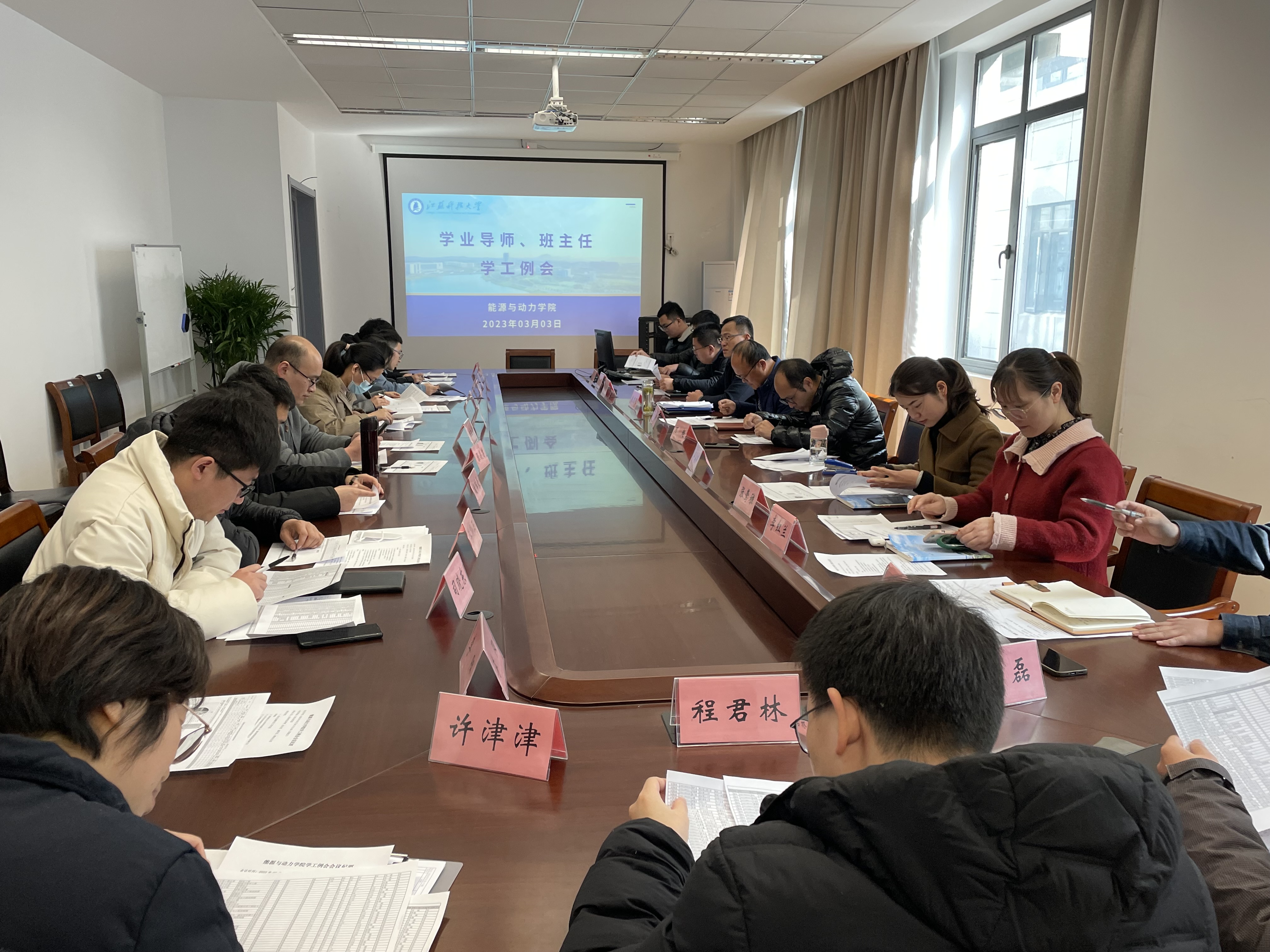 为贯彻落实2023年度学校员工工作的总体要求,进一步发挥学业导师、班主任和辅导员在引导老员工健康成长、全面发展方面的作用,3月3日,72779太阳集团组织召开新学期学业导师、班主任学工例会。学院副经理夏兆旺,党委副书记袁志飞,教务办主任万超,各专业学业导师、班主任和辅导员参加此次会议。