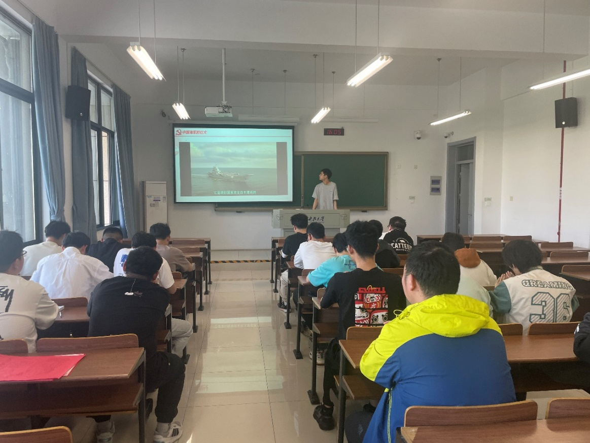 今年是人民海军成立75周年,活动开始,黄子豪、刘嘉奇两位员工党员带领同学们学习了人民海军从弱小走向强大,从木船发展到巨舰艰苦奋斗、向海图强的发展历程。同学们对祖国海军事业的发展有了进一步了解,也深刻感受到了祖国的强大;同时也增强了建设社会主义现代化强国的历史责任感和使命感。