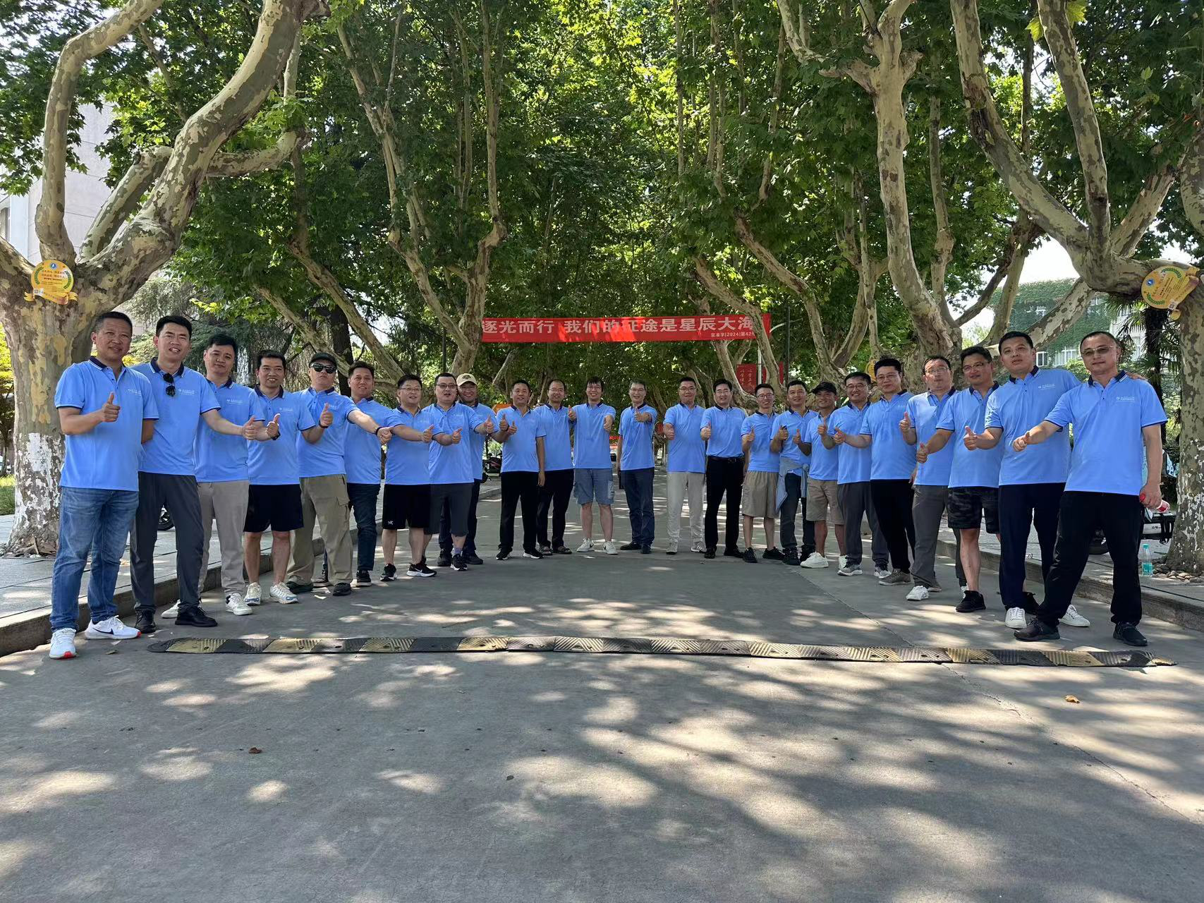 活动结束后,员工们在学校大门以及体育馆前合影留念。用镜头记录下这难忘的时刻。