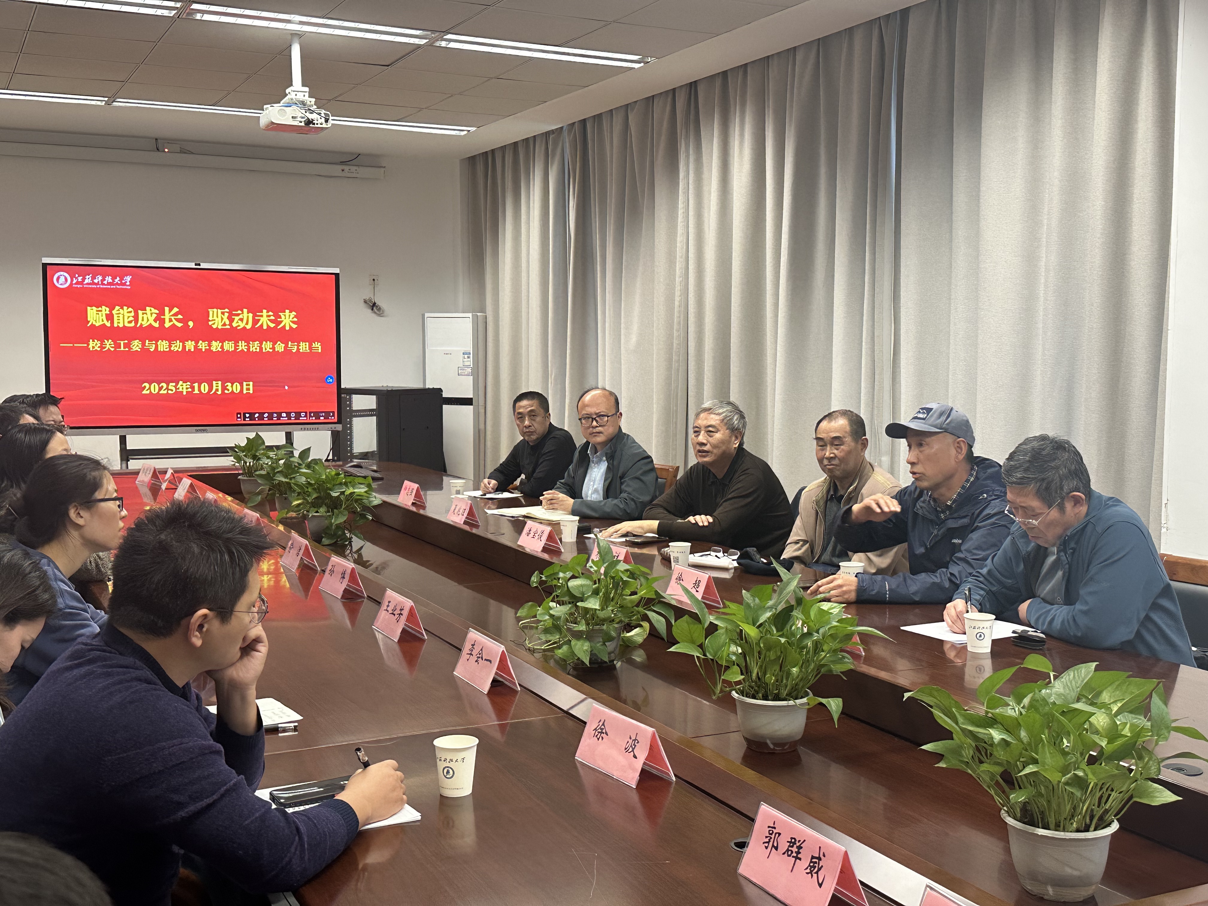 为全面助力青年教师职业发展,夯实教学科研基本功,2025年10月30日,校关工委“行知驿站”专家潘宝俊、杨永祥、徐超、仲志强、陈育平一行应邀走进能动公司,与近三年新入职的青年教师代表举行“赋能成长,驱动未来”主题座谈。座谈会由学院副经理夏兆旺主持。