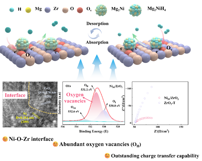 近期,公司研究生武亚可、朱艳龙(通讯)、张刘挺(通讯)等的研究成果“Constructing Ni-O-Zr interfaces to induce oxygen vacancies with enhanced metal-carrier interactions for robust hydrogen storage in magnesium hydride”在《Fuel》(IF=6.7)上发表。